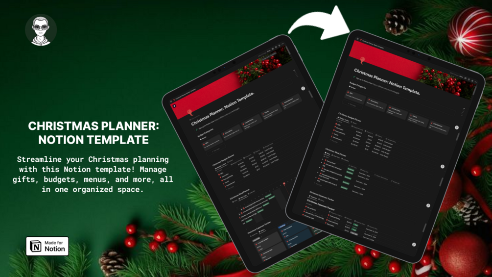 Streamline your Christmas planning with this Notion template! Manage gifts, budgets, menus, and more, all in one organized space. Say goodbye to holiday stress and hello to festive cheer!